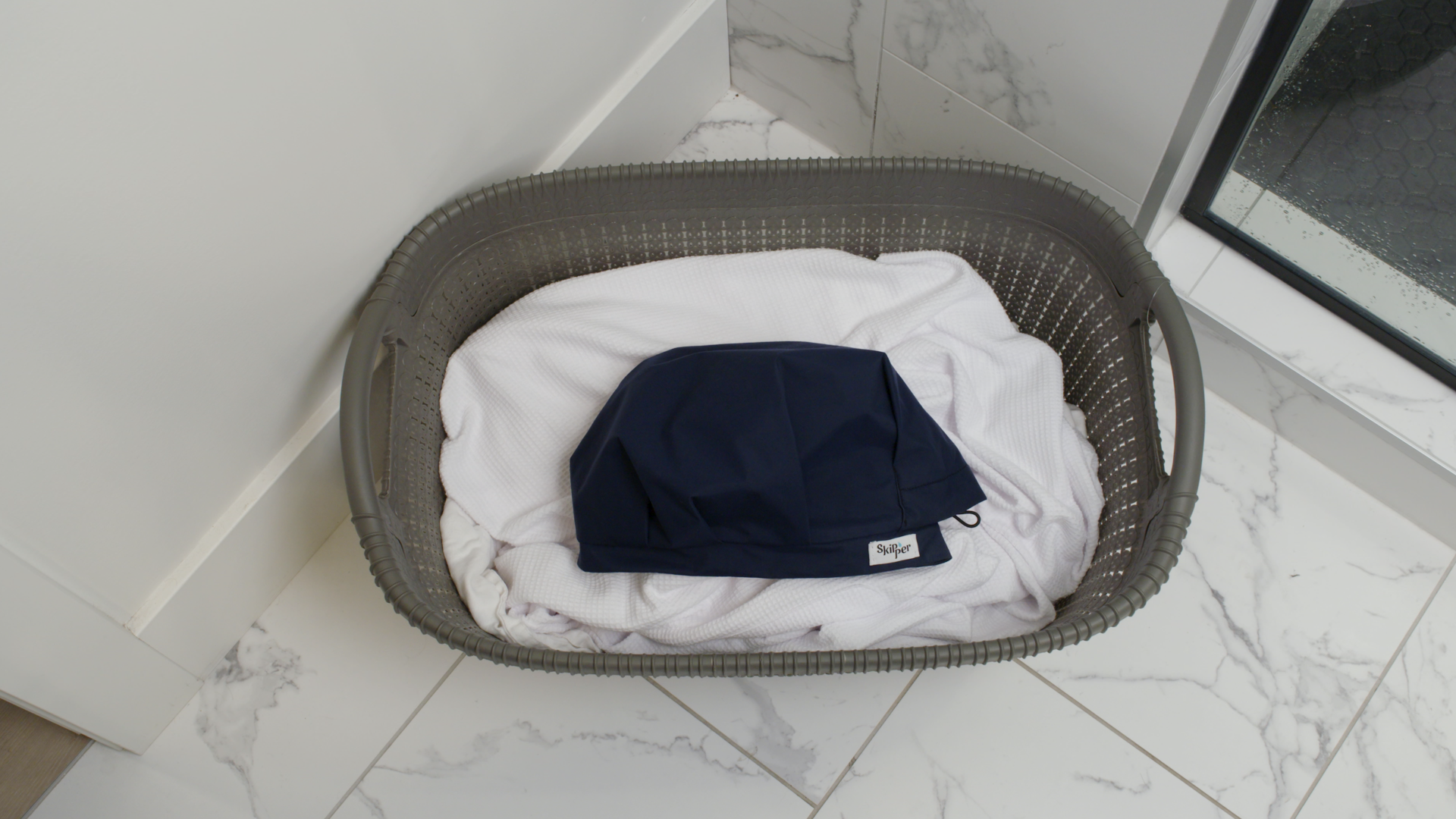 When it needs a refresh, your Skipper shower cap can be machine-washed on a gentle cycle, then hang it to dry. Do not iron it or use bleach.