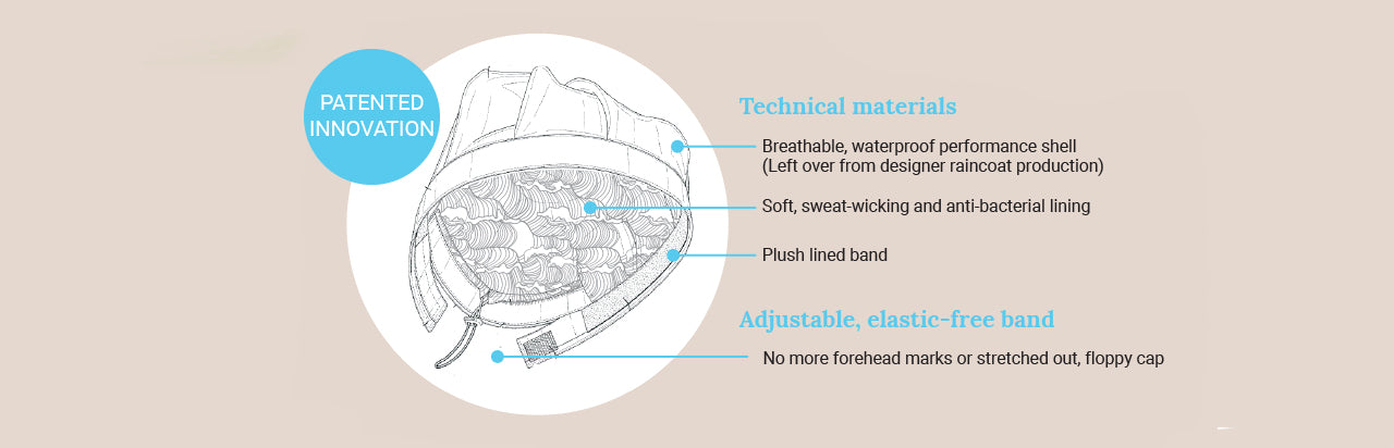 I got the Skipper for two reasons: I was sick of buying shower caps which wore out and got moldy, and therefore had to be thrown out. The Skipper is designed to last, and to be washed. It doesn’t leave an elastic mark on your head, is comfortable, and can be adjusted however you’d like. I also got it to support Canadian businesses and small business owners. Thank you, Skipper!